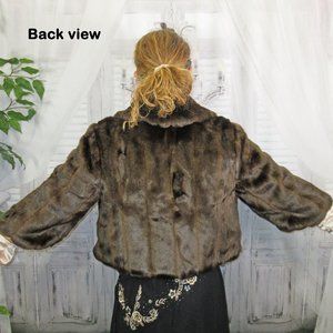 Sz S Faux Fur bolero jacket, Ann Taylor Loft, Dark brown, Collar, Half sleeves
