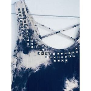 Sz S Forever 21 Tie Dye Top Tank Lattice Back Studs Neckline Boho Hippy Top EUC