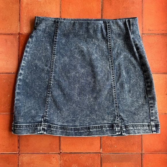 Women’s Size Small | Garage Blue Acid Wash Pull-On Denim Mini Skirt | Great Pre Loved Condition / No Flaws To Note | Medium Acid Wash / 2 Front Slits / Mini Length / Pull-On Styling | 71% Cotton / 24% Polyester