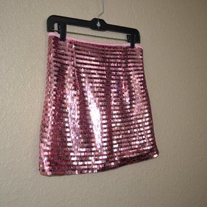Sz S H:OURS Pink Metallic Sequin Stellan Mini Skirt
