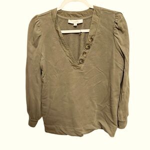 Sz S Loft Lightweight Puff Sleeve Sweatshirt W Faux Buttons 20.5“ P2p