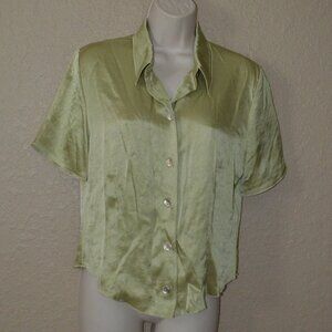 Sz S Nanushka Green Short Sleeve Button Down Blouse
