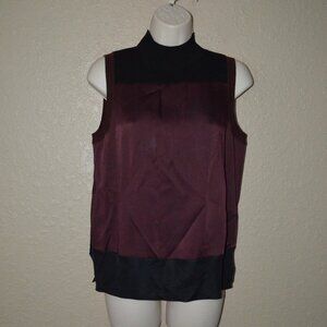 Sz S Rag & Bone Vivienne Burgandy Black Contrast Sleeveless Top Blouse