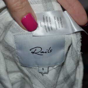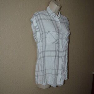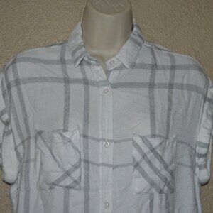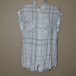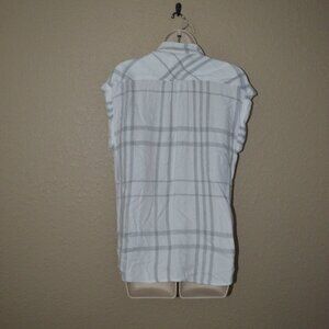 Sz S Rails White Gray Cap Sleeve Button Down Blouse