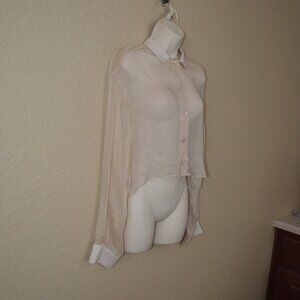 Sz S Sablyn Beige Silk Button Down Cropped Long Sleeve Blouse