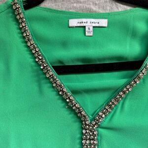 Sz Small Naked Zebra Long Sleeve Rhinestone Silver Beaded Going out top blouse