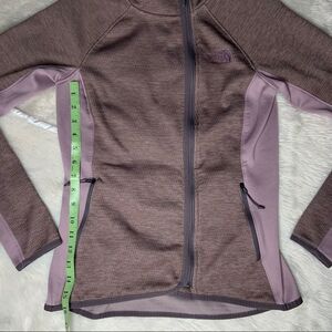 Used but condition Sz Small the North Face Zipped Mauve Purple. Great for cold winter days. A couple small snags; see photos for these.