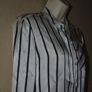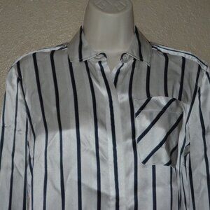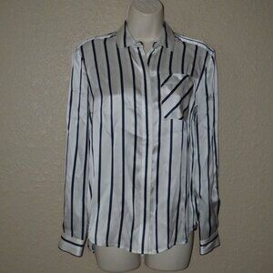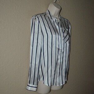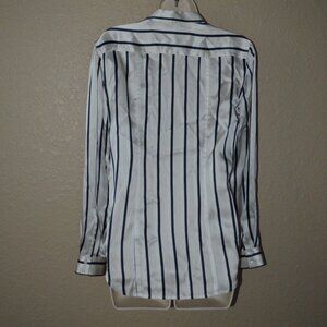 Sz XS ATM White Black Silk Stiped Long Sleeve Blouse