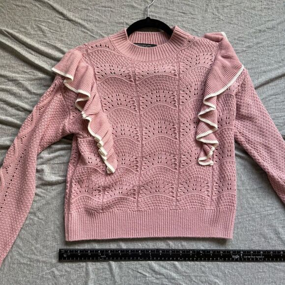 Sz XS Marc New York Andrew Marc Pink and White Ruffle Knit Sweater. In good used condition nations condition; only worn once.