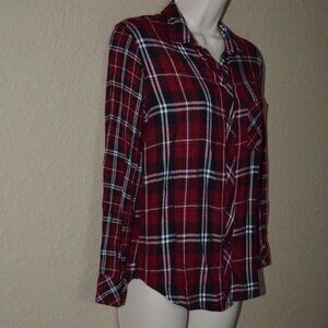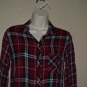 Sz XS Rails Maroon Plaid Long Sleeve Blouse