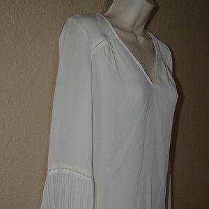 Sz XS Ramy Brook White Long Pleated Bell Sleeve V Neck Blouse