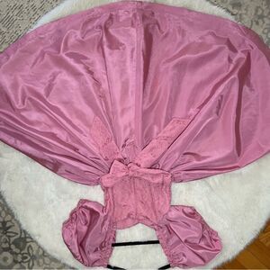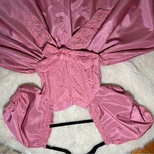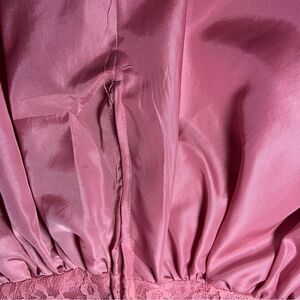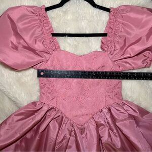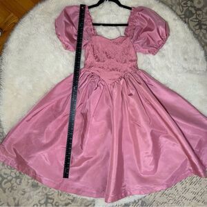 Sz XS or 00 Vintage Pink Mauve Puffy Sleeve Lace A line midi dress. Very 80’s Barbie
