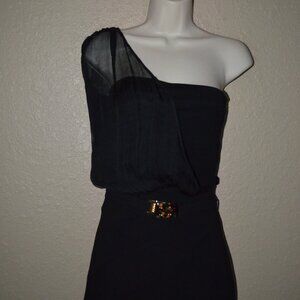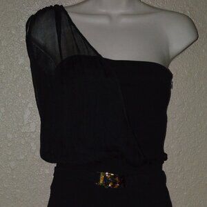 Sz XS/S Fendi Black Strapless One Shoulder Sheer Belted Sheath Dress