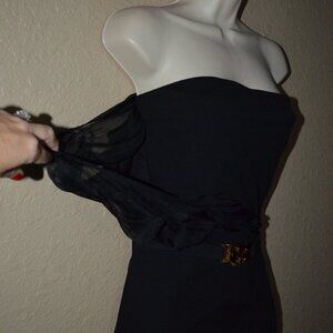 Sz S Fendi Black Strapless One Shoulder Sheer Belted Sheath Dress