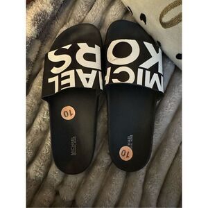 Sz10 nwot michael Kors Gilmore pool slide sandals w/logo bbw black white
