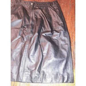Sz 12 Brandon Thomas Black Leather Pencil Skirt Midi Mini Elastic Side Rear Zip