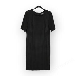 Sz14 DKNY Houndstooth Ponte Stretch Sheath KneeLength Slimming ShortSleeve
