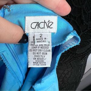 Sz 2 Cache Blue Beaded & floral Embroidered Short Skirt