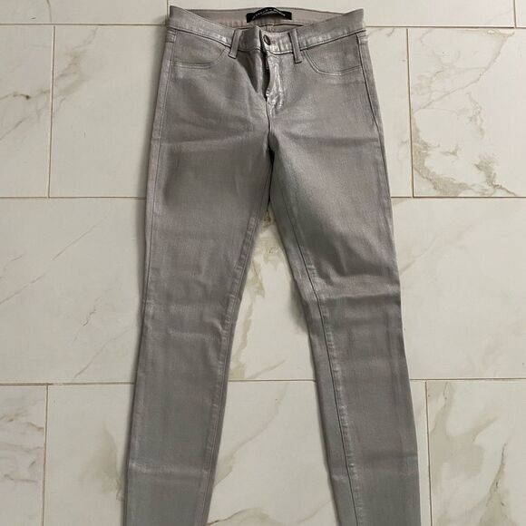 Sz 26 J Brand for Neiman Marcus silver metallic super skinny jeans