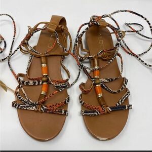 Aldo boho festival lace up ankle wrap Ninna feather accented beaded sandals size 8