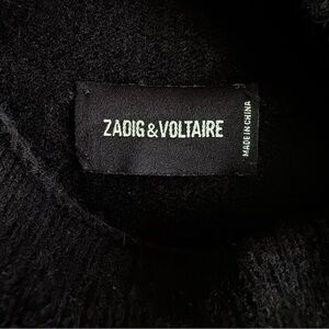Zadig and Voltaire Brizza sweater in black. Excellent condition. Size medium. Material: 100%cashmere. Bust halfway: 18”; sleeves: 24”; and total length: 21”.