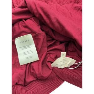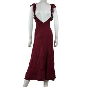 Sézane 'Aphrodite' Red Viscose Dress Size XS: sleeveless knitted maxi dress, ruffles on the shoulders and back, fancy knitting, v-neckline in front and deep back, fully lined, measurements: 11 inch bust x 49.5 inch length.