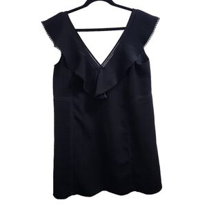 Sézane Black Sleeveless Ruffle V-Neck Dress Size 40 / M Elegant Parisian Style
