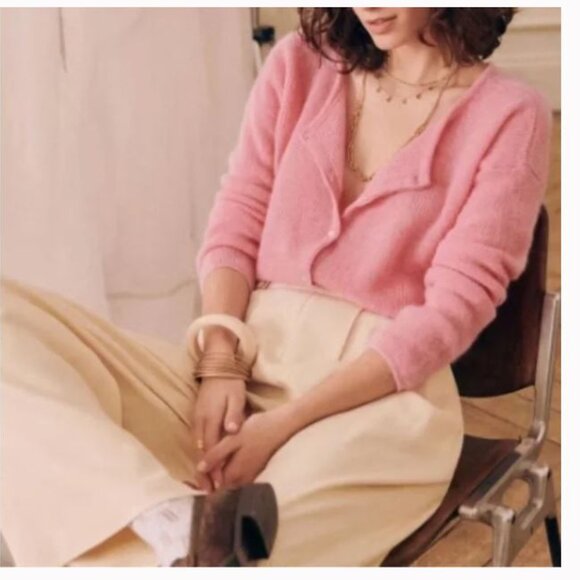 Sézane Gaspard Cardigan Pink Mohair Alpaca Button Sweater - Women's size Extra Small