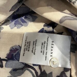 Iconic straight cut shirt; silk/ cotton blend, light and airy in blue/ navy flowers