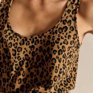 Sézane John Leopard Scoop Neck Tank Top XS | Organic Cotton Linen Blend