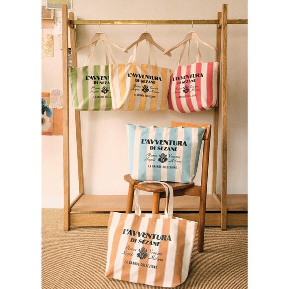 S�zane 'L'Avventura' Yellow Tote Bag: canvas style bag, open top, unlined, cotton.