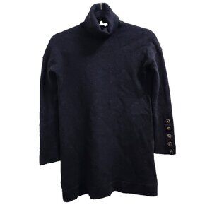 Sézane La Maille Merino Wool Turtleneck Sweater Dress Black Long Sleeve Button Cuffs XS