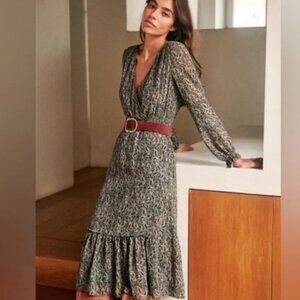 Sézane Long-Sleeve Chiffon Paisley Print Midi Dress with Ruffles. Lightweight and flowy with the romantic flare of Parisian fashion. Fully lined. Smocked waistline for a defined / snatched waist. In excellent condition with no flaws to call out. Retails $220