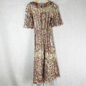 Sézane Paula Metallic Shimmer Silk Midi Dress Paisley Size US 2
