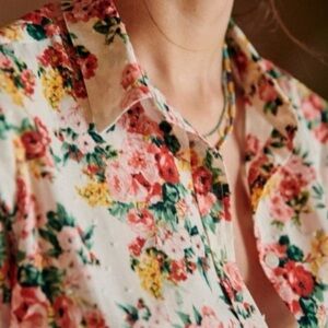 Sézane Pierro Shirt Bouquet De Rose Size 34/36 Button Down Feminine Floral Shirt
