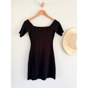 Sezane Coraline dress, black off-shoulder mini dress, Parisian chic dress, feminine bodycon dress, little black dress, romantic date night dress, fitted black mini, French girl style, modern romantic dress, chic cocktail dress, timeless black mini, elevated basics dress, sleek Parisian style, effortless evening look, versatile party dress