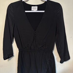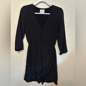 Sézane® Silk Emma Black Dress Ruffles Size 34 Classic Designer Paris Boho Causal