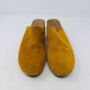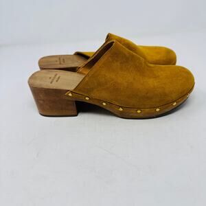 Sézane Tibby Clogs Women’s Size 40 Mustard Suede Wooden Block Heel Mules