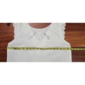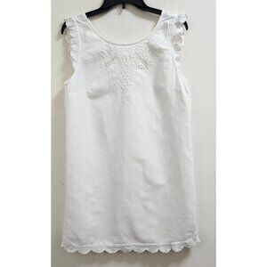 Sézane White Linen Embroidered Dress Size 40 Eyelet Ruffle Trim Mini Tunic Boho