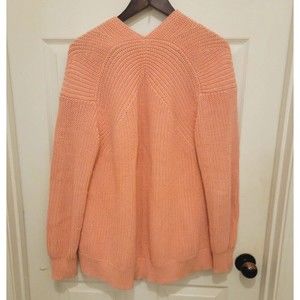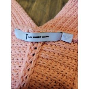 T. ALEXANDER WANG Women's Chainette Ribbed Knit Oversized Sweater CORAL PINK Sz LARGE. Has a small spot front and larger but faint spot back hem, shown in photos. I had washed the one in back once and it did fade, this is a hand wash sweater. Lovely oversized style in a Coral pink shade.