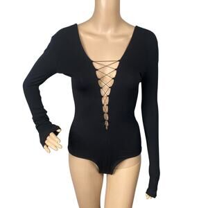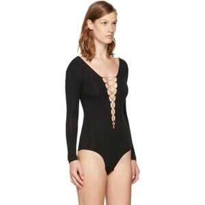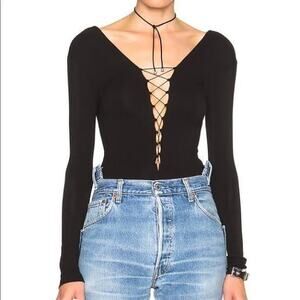 T Alexander Wang Black Plunging Lace Up Bodysuit SZ S
