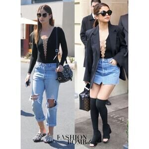 This is a celebrity favorite by the brand T Alexander Wang. This bodysuit features snap closures underneath and has a plunging neckline and back with stretchy lace up detail (see close up). Fabric is an incredibly soft modal/spandex blend. Bodysuit is lined and creates a flattering shape. No flaws to note, in like new condition! Don’t miss this awesome designer bodysuit by Alexander Wang!
