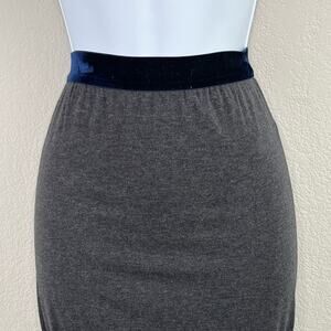 A velvet blue waistband tops this soft and stretchy knee length mini skirt from T Alexander Wang, in a neutral gray color.