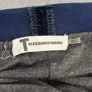 A velvet blue waistband tops this soft and stretchy knee length mini skirt from T Alexander Wang, in a neutral gray color.