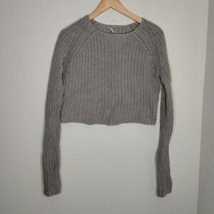 T Alexander Wang Chunky Knit Cotton Blend Gray Cropped Sweater