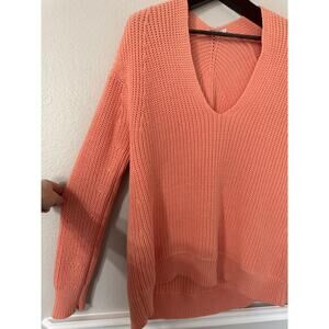 T Alexander Wang Deep V-Neck Knit Sweater Salmon Coral Size Medium
