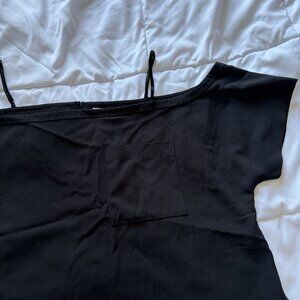 T Alexander Wang Womens Size 8 Adjustable Cold Off Shoulder Cropped Shirt Black