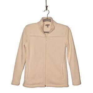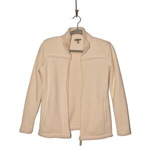 T BY TALBOTS $98 Double Knit High Pile Fleece Zip Jacket Ivory P Petite