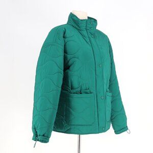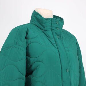T BY TALBOTS Patch Pocket Quilted Jacket Mockneck Relaxed Fit Green Size L