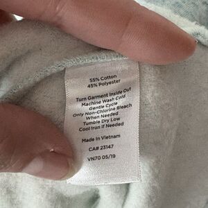 The T BY TALBOTS Sweatshirt is a stylish and comfortable fleece cotton blend pullover in an aqua blue color. This V-neck sweatshirt features a solid pattern and long sleeves, making it suitable for both activewear and casual occasions. With a regular fit and polyester/cotton material, this sweatshirt is perfect for gym training or walking during the summer, fall, and spring seasons. Additionally, it includes accents like buttons and pockets, adding practicality to its design. Made by the reputable brand Talbots, this sweatshirt combines classic and preppy styles for a versatile addition to any wardrobe.